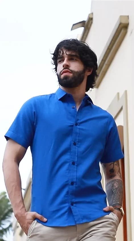 $ 330.000Camisa Azul Cuello Neru con Bordado de Legado Profundo